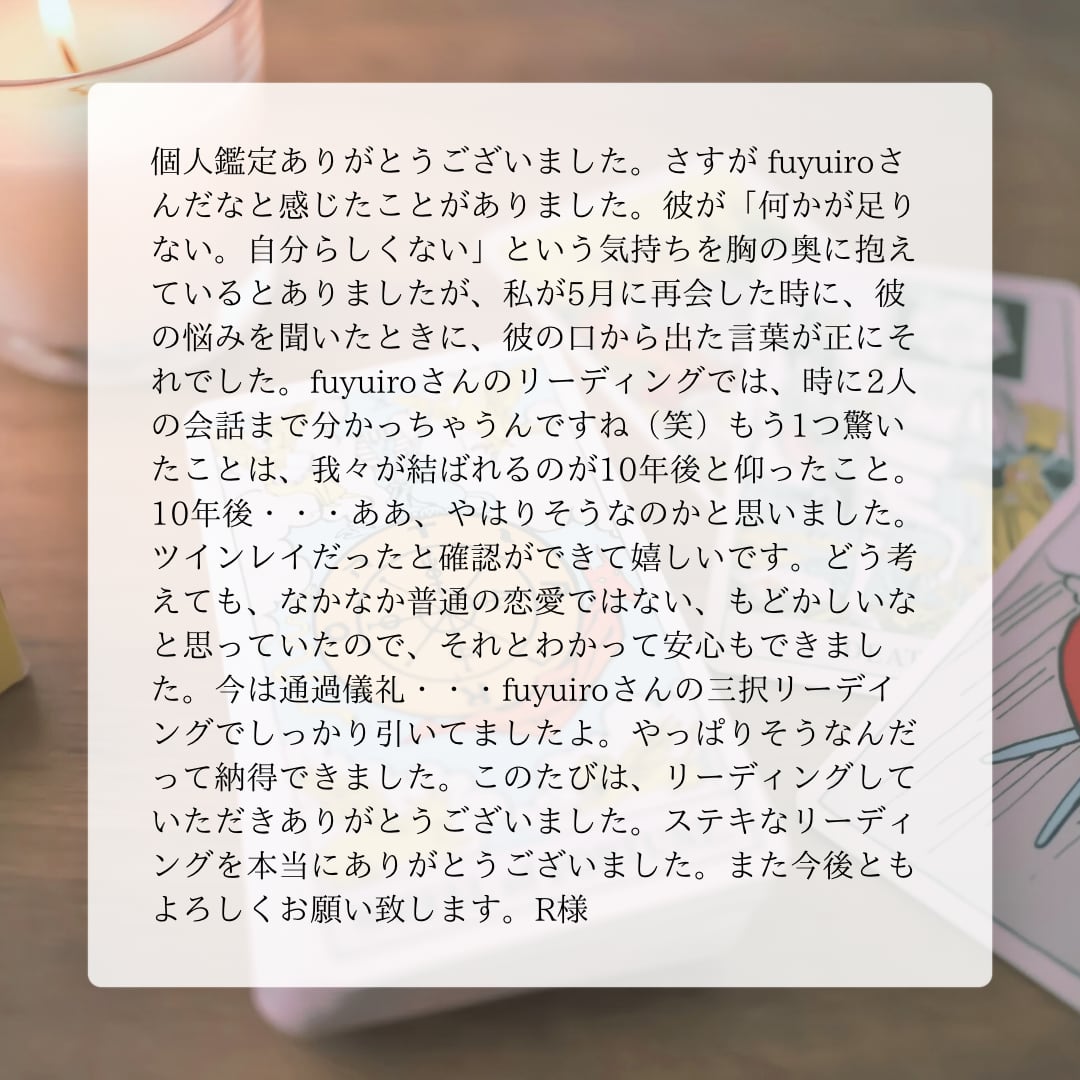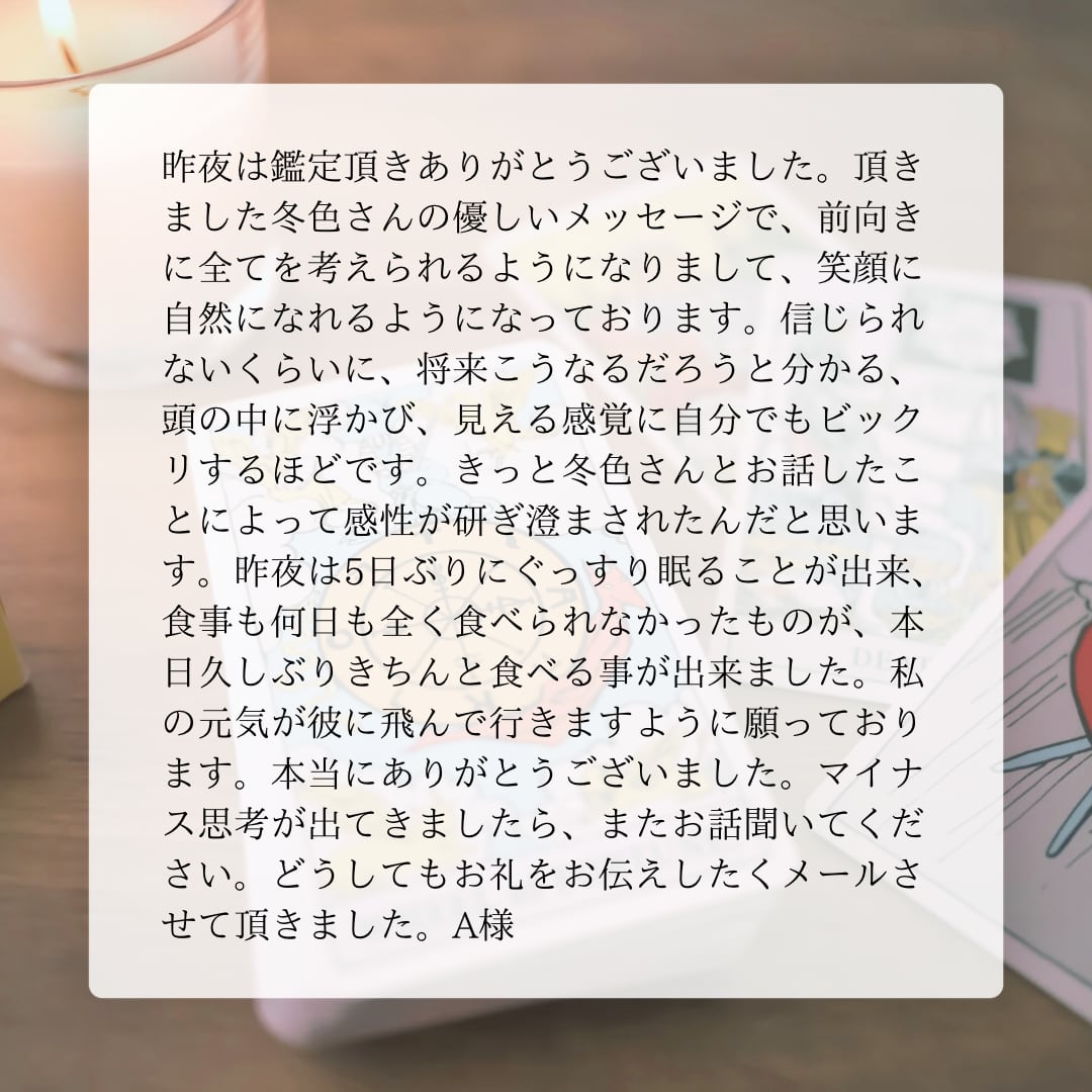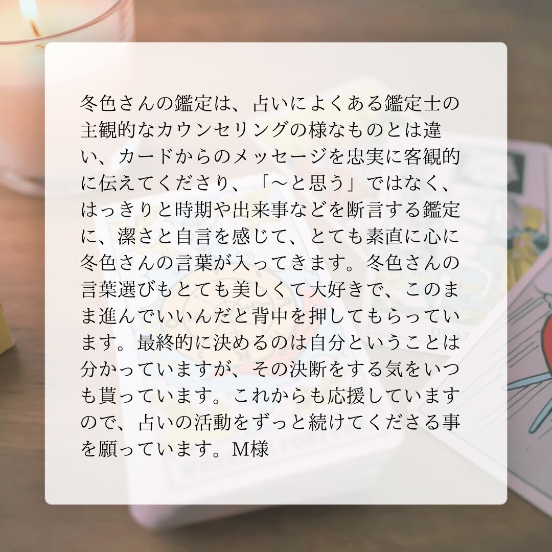 私の鑑定が、あなた様の明るい未来への架け橋になれましたら幸いに存じます。