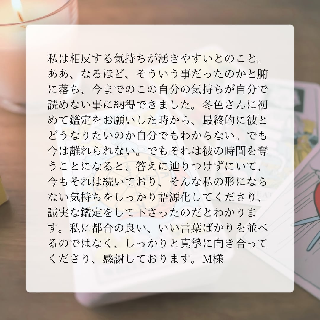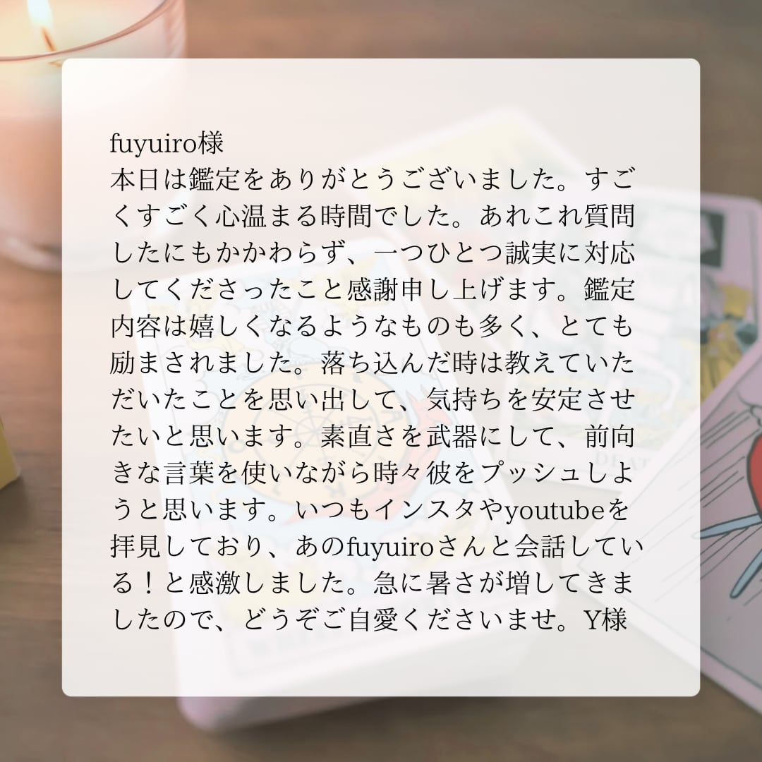 私の鑑定が、あなた様の明るい未来への架け橋になれましたら幸いに存じます。