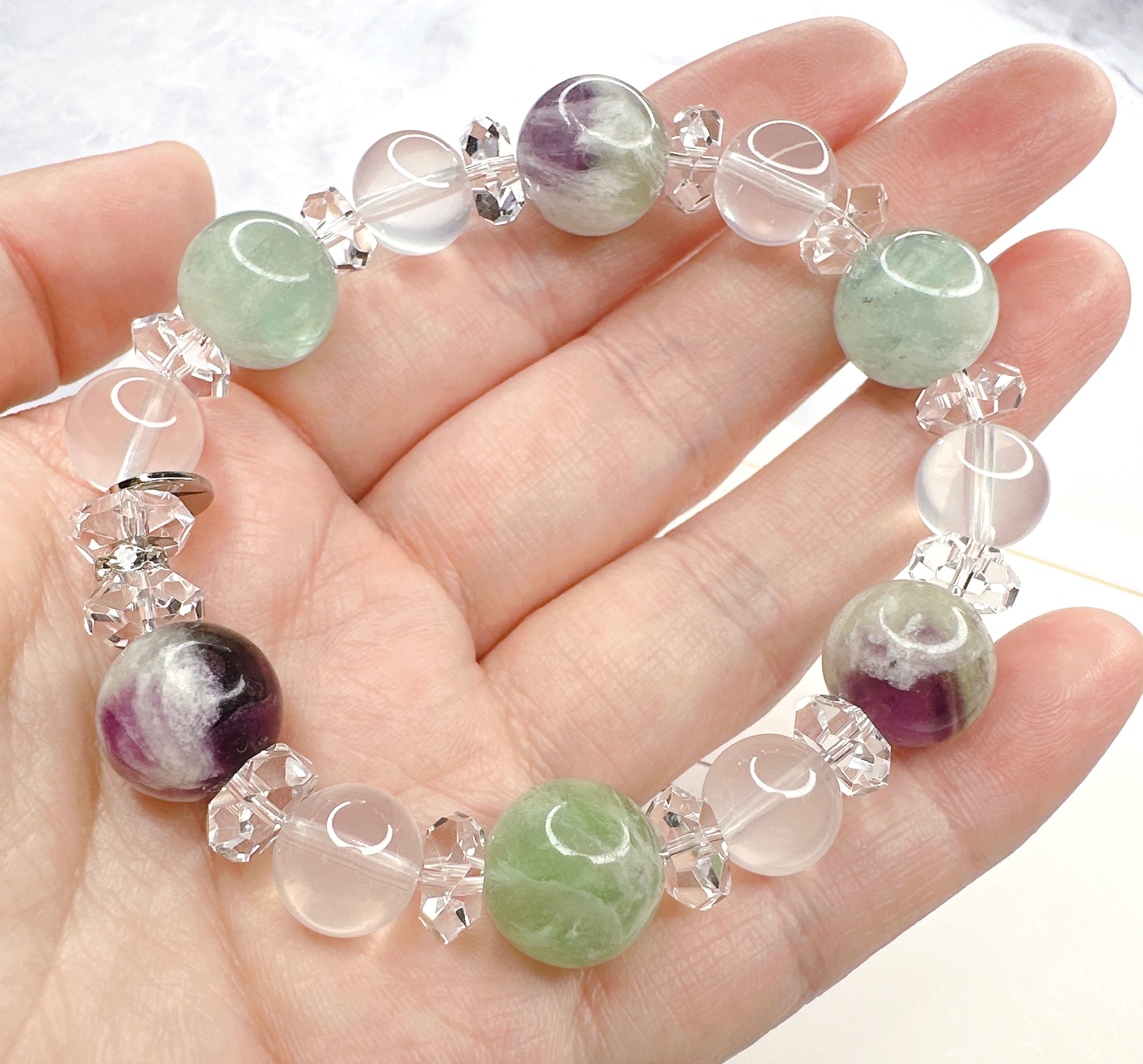 フローライトの良いところを凝縮した組み合わせで、透明感も高く、虹も入る高波動のパワーストーンです。