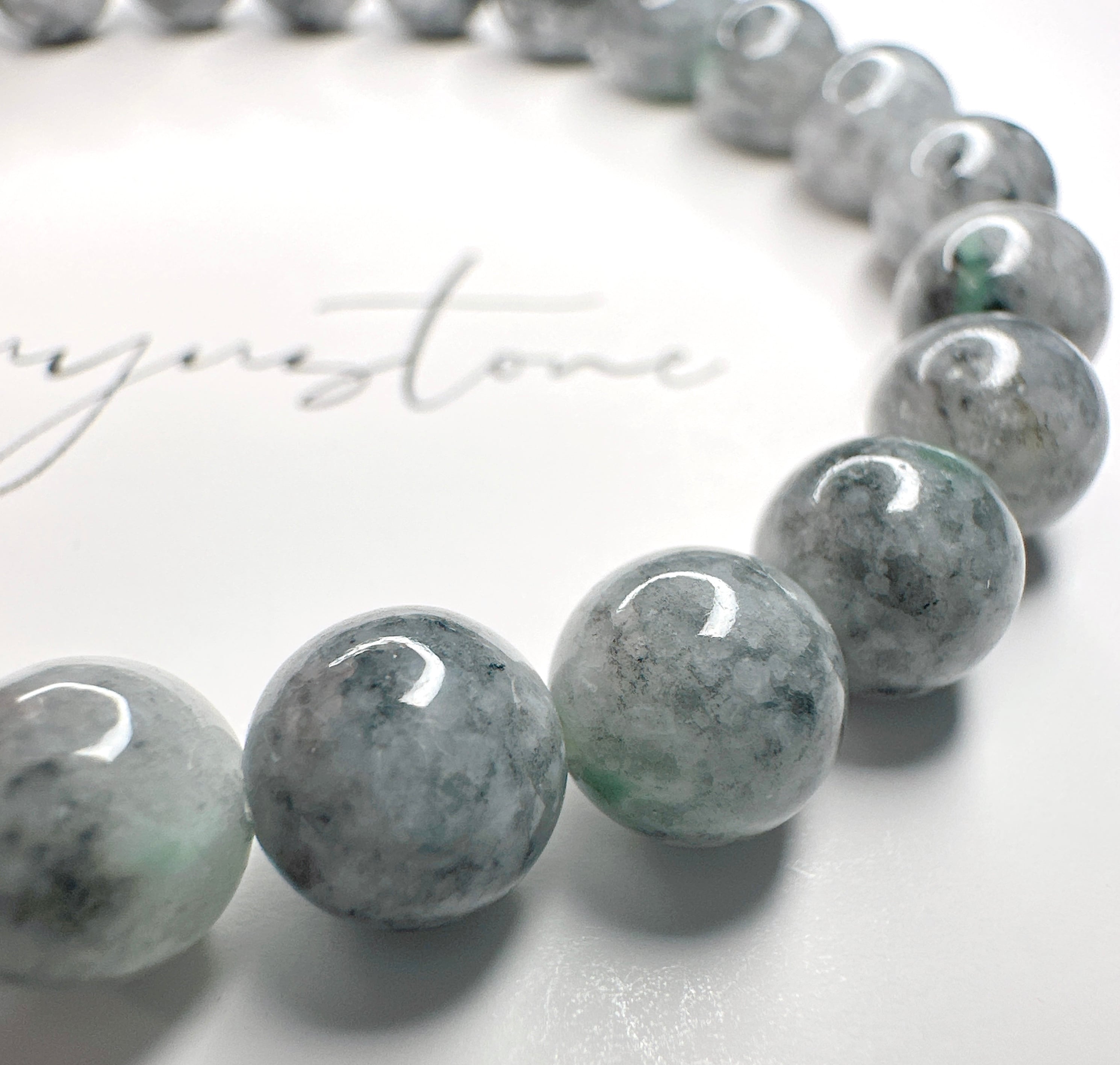 灰色の独特な色合いが特徴で、一般的な緑色の翡翠よりも珍しく、採掘も難しいことから希少価値が高いです。