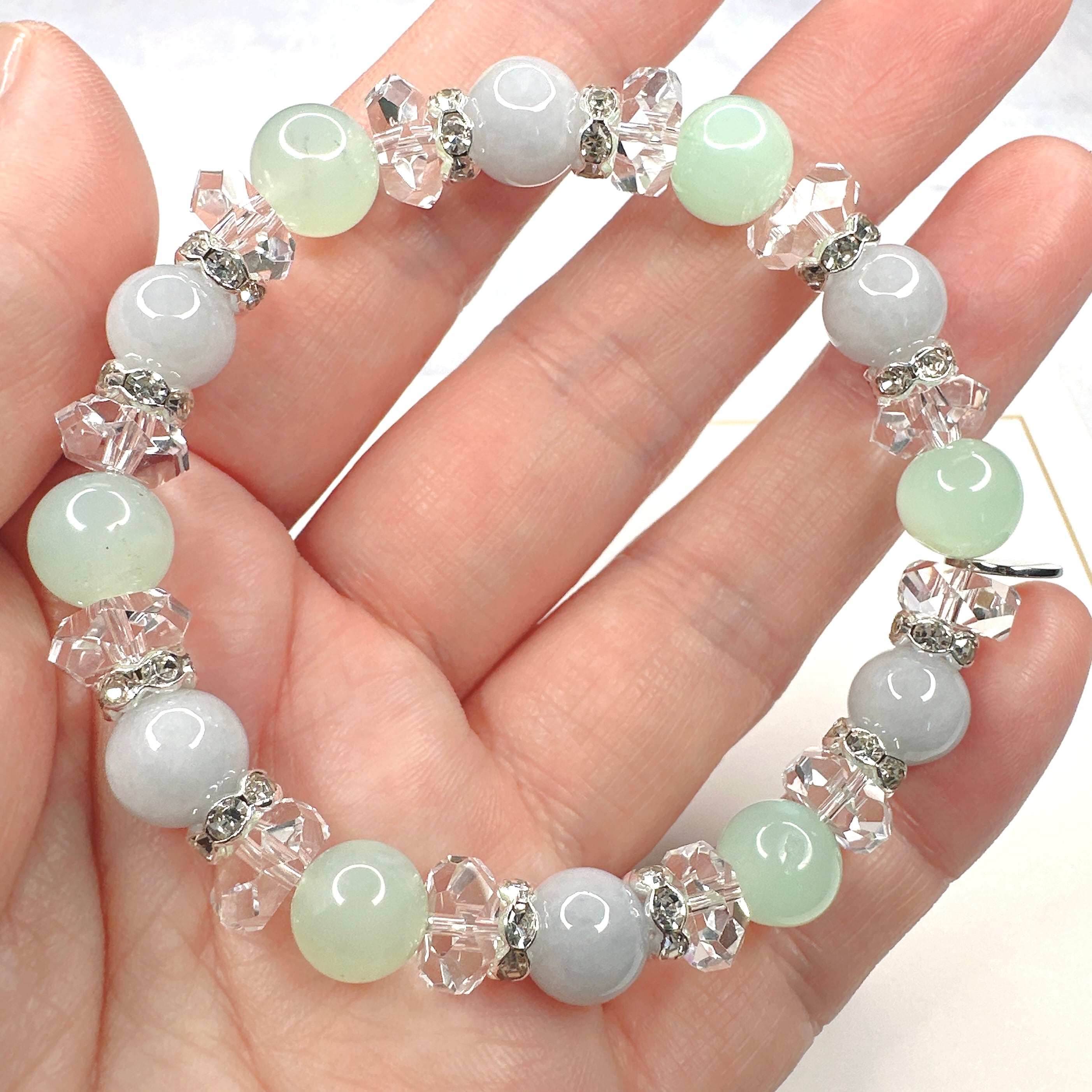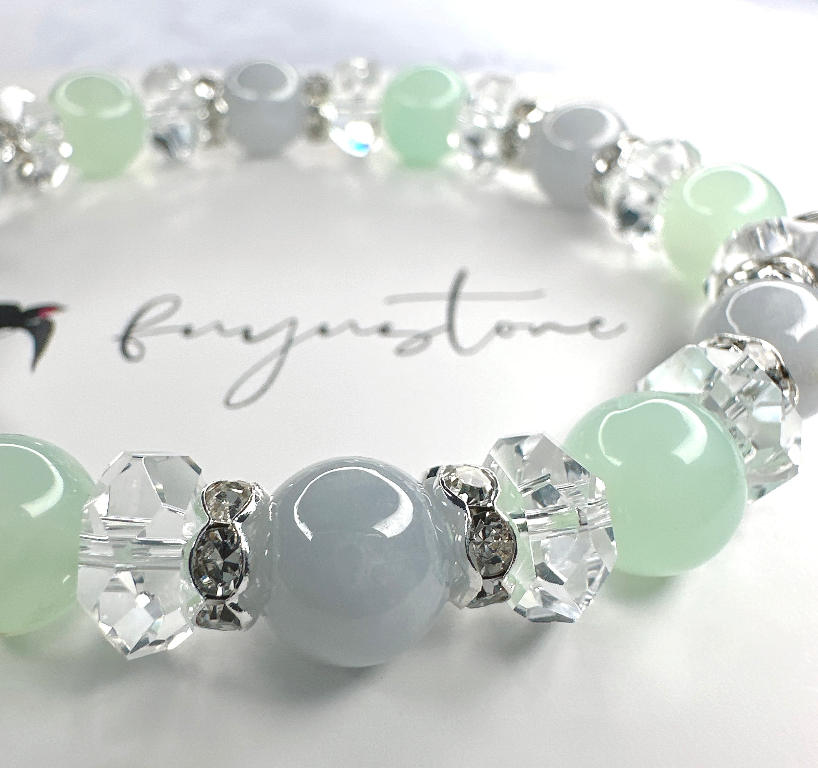 【Birthstone bracelet】グリーンオパール+ラベンダー翡翠