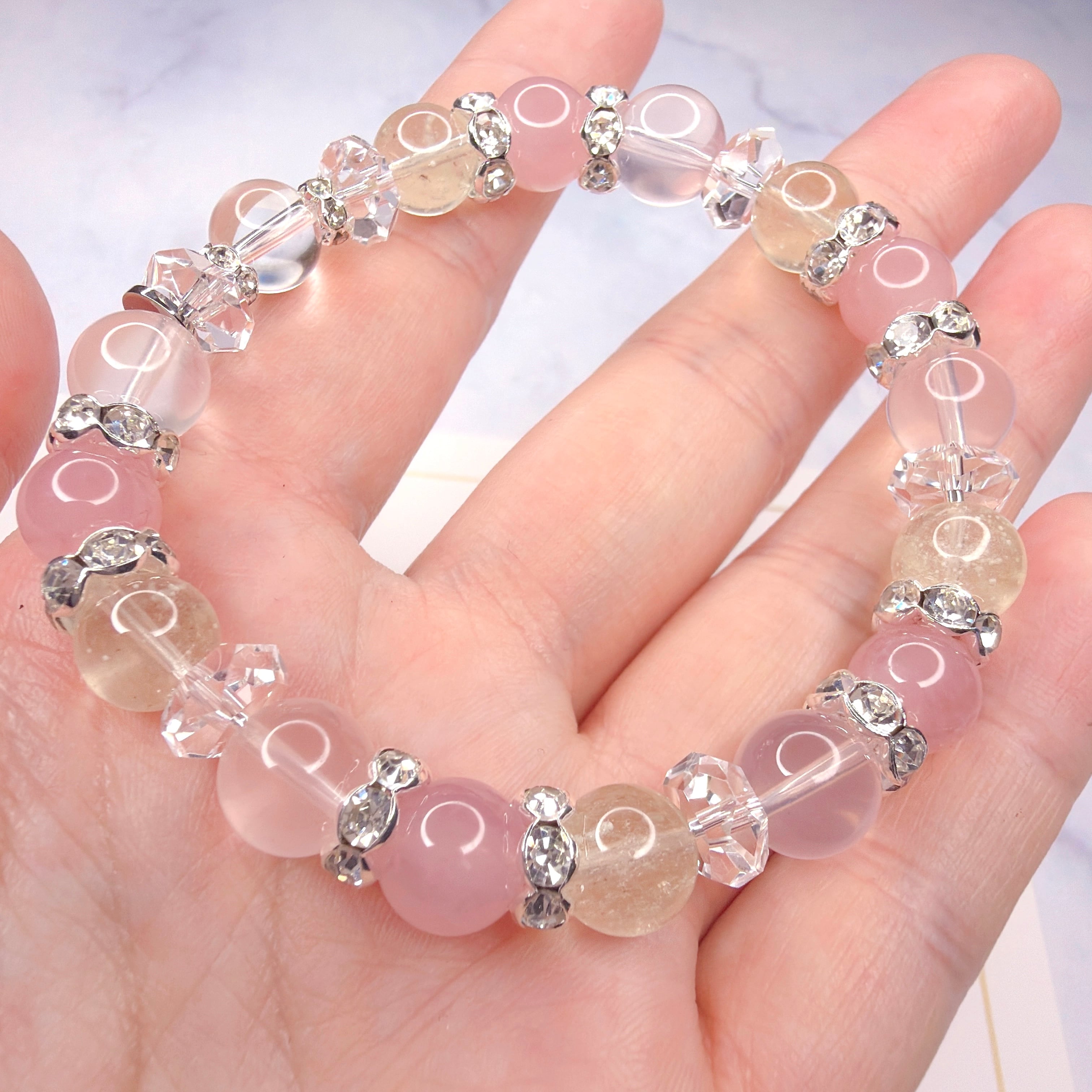 ブレスレットを照明や太陽光にかざして、ローズクォーツのスターの煌めきもご堪能いただけます。