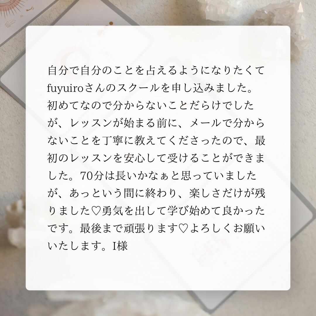 それぞれの段階に合わせて、無理なく、着実に進め、「あなたが、自分のリーディングを信じられる感覚」を育てて参ります。