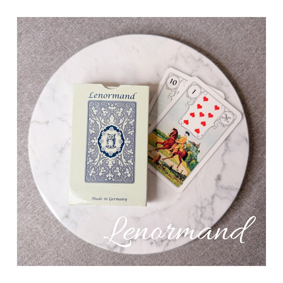 タロットは「ウエイト版」、ルノルマンは「数字とトランプが描かれているカード」(写真参照)を使用します。はじめての方は、同様のカードのご用意をお願いいたします。