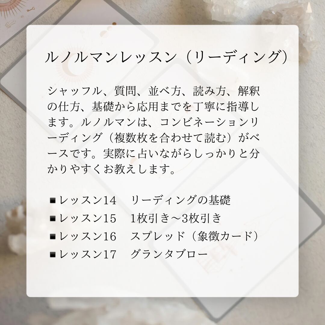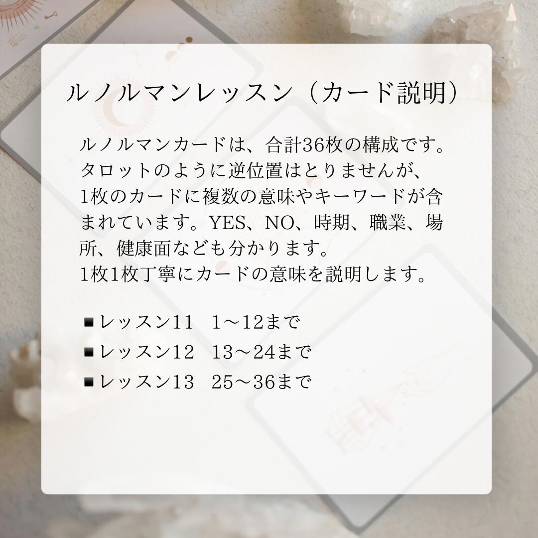 カードの説明は、レッスン内容を要約した資料をご用意しております。ご予約いただいたレッスン毎にメール(PDF)でお送りいたします。リーディングレッスンは実践となりますので資料はございません。