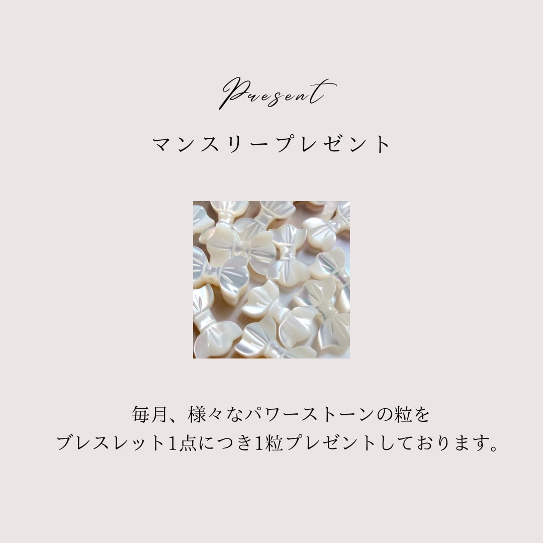 毎月、様々なパワーストーンの粒をブレスレット1点につき、1粒プレゼントしております。