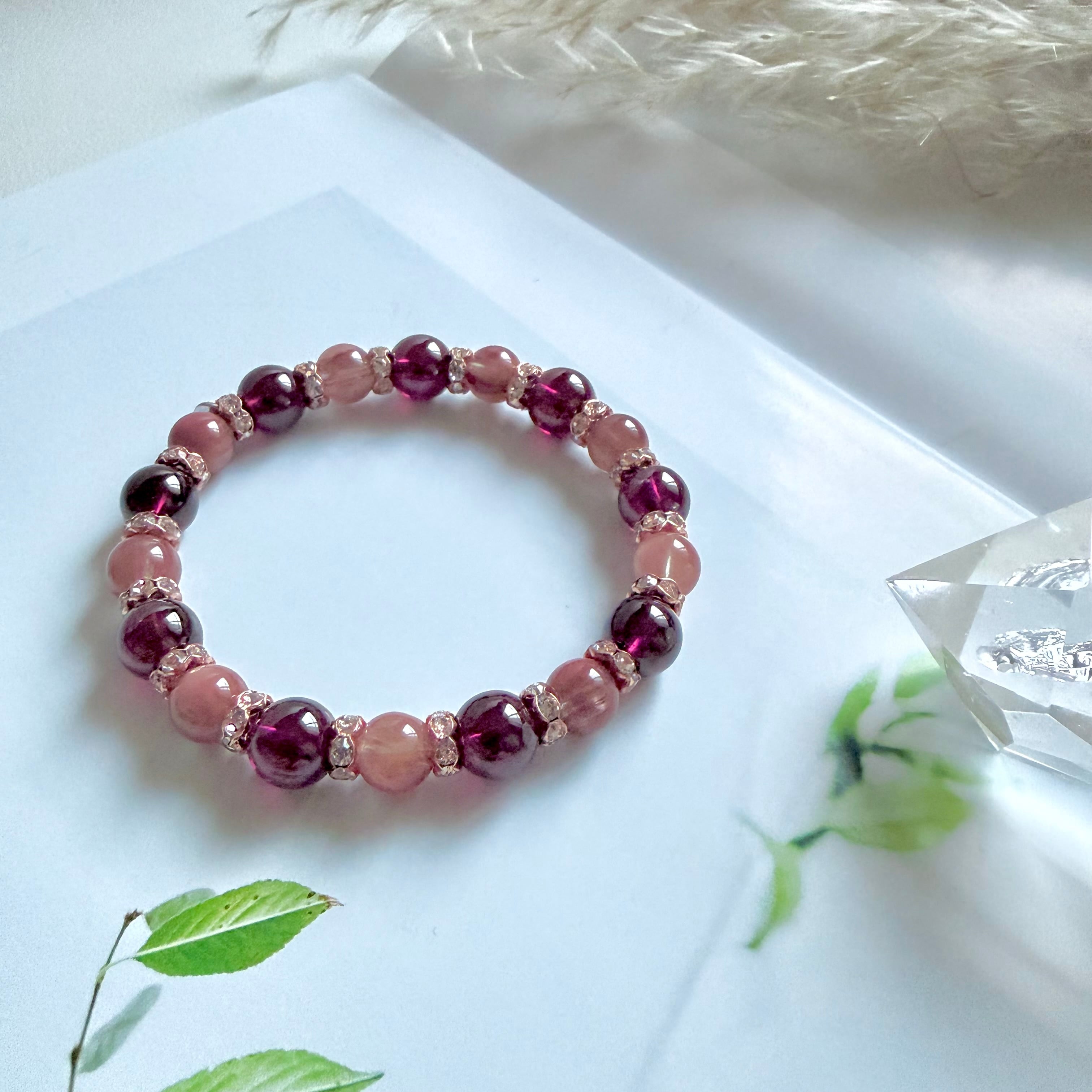 通常のガーネットに比べて、レッドやパープルがより明るく透明感があるパワーストーンです。