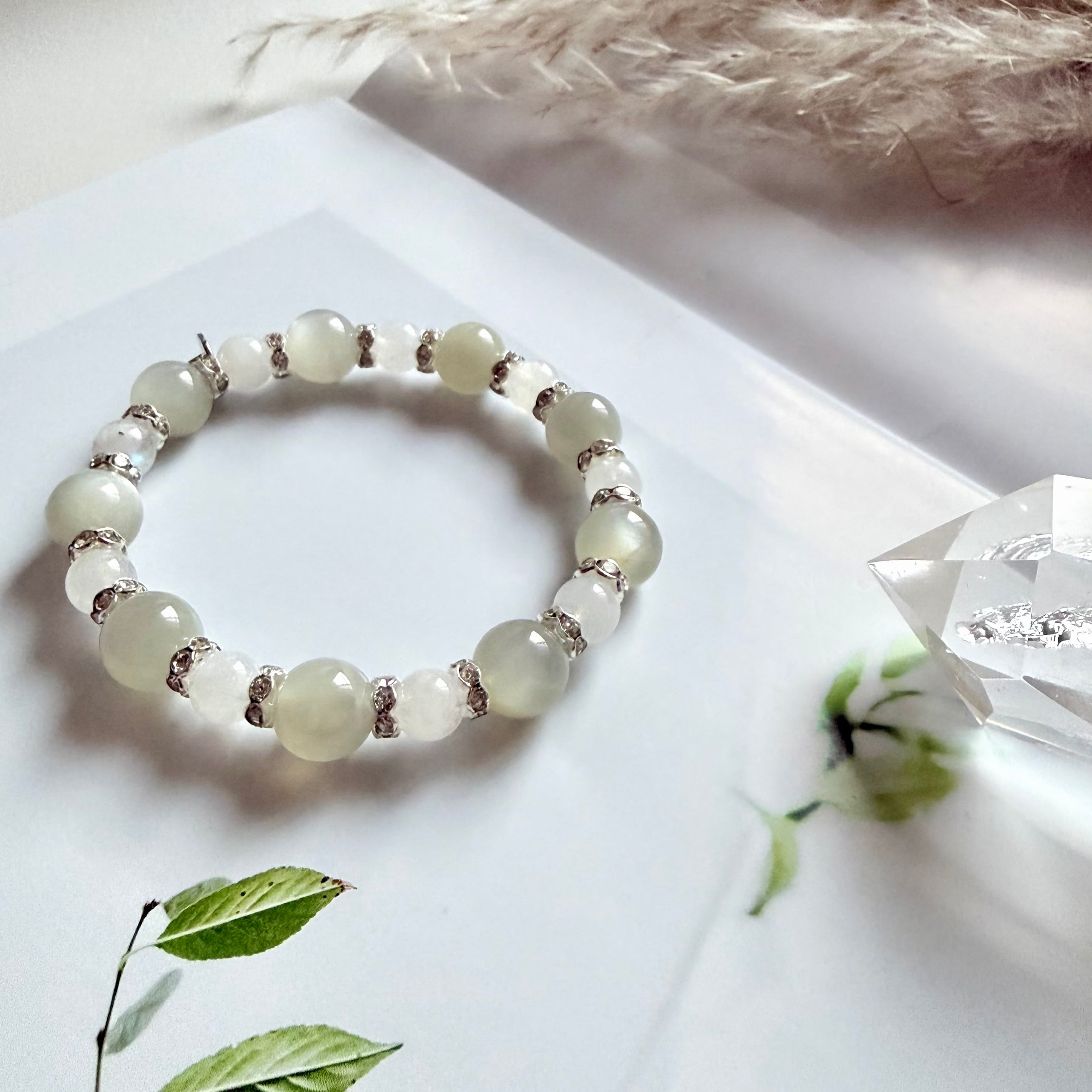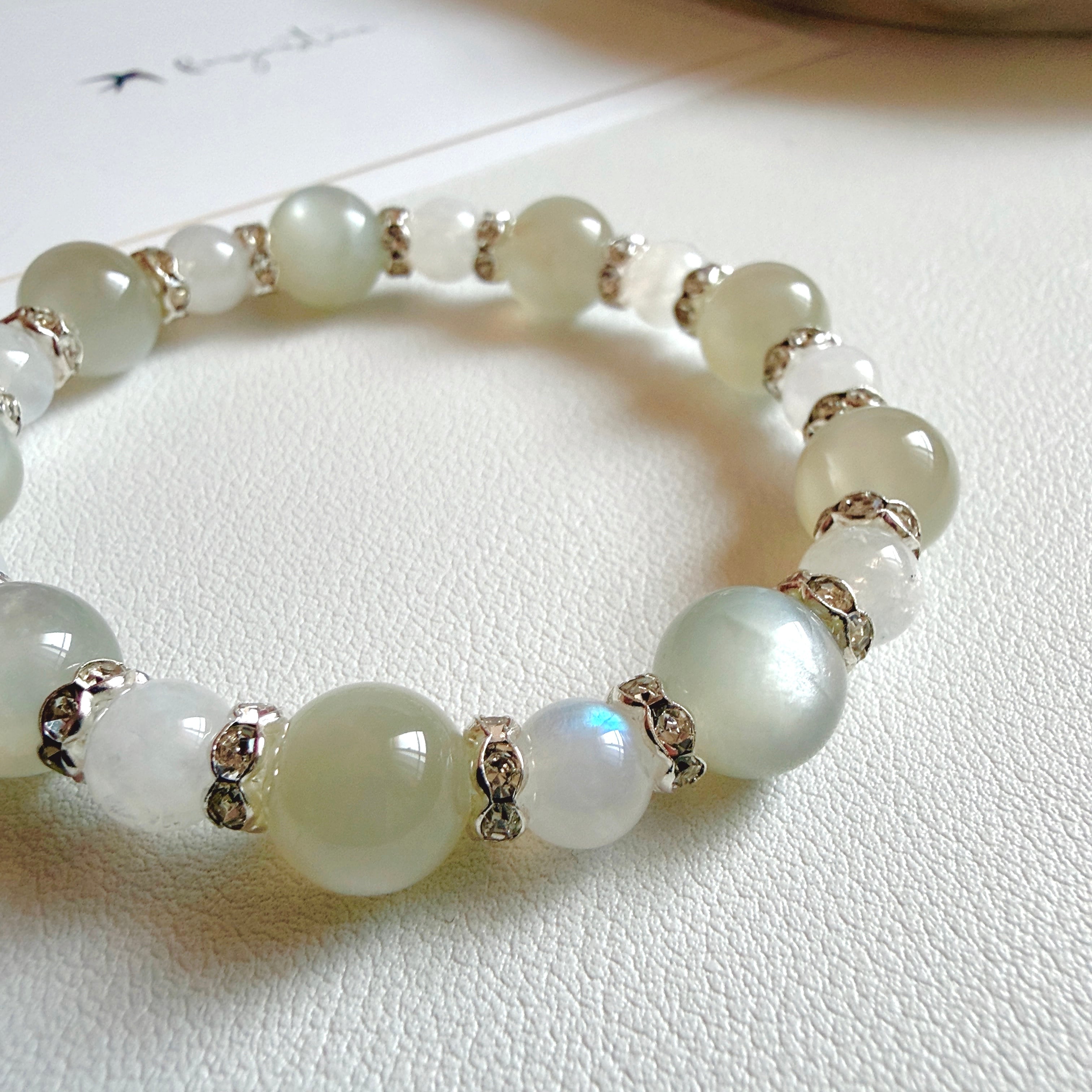 【Chakra】グリーンムーンストーン+ホワイトラブラドライト